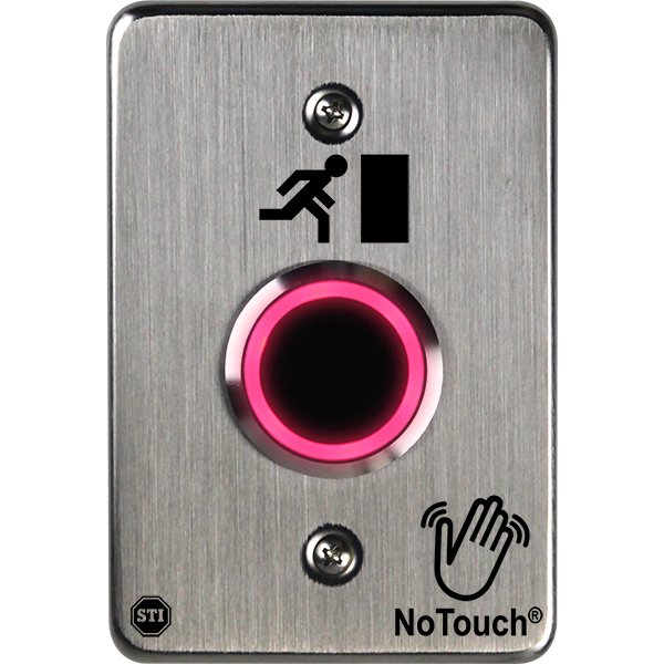 The button is constructed of corrosion resistant stainless steel, allowing it to take tough knocks in stride. Also, the faceplate is slightly oversized for retrofit applications to cover marks from a previous install. This durable and long lasting button is easily installed within minutes right on site. NoTouch® Stainless Steel Button offers three standard models: OPEN, EXIT and the international exit symbol representing a person exiting. Custom models are also available with printing capabilities at STI’s corporate and international offices. |