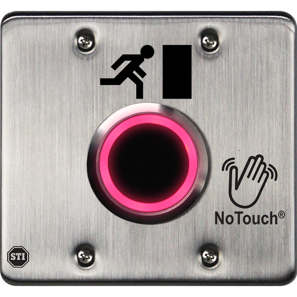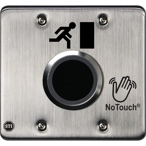 The button is constructed of corrosion resistant stainless steel, allowing it to take tough knocks in stride. Also, the faceplate is slightly oversized for retrofit applications to cover marks from a previous install. This durable and long lasting button is easily installed within minutes right on site. NoTouch® Stainless Steel Button offers three standard models: OPEN, EXIT and the international exit symbol representing a person exiting. Custom models are also available with printing capabilities at STI’s corporate and international offices. |