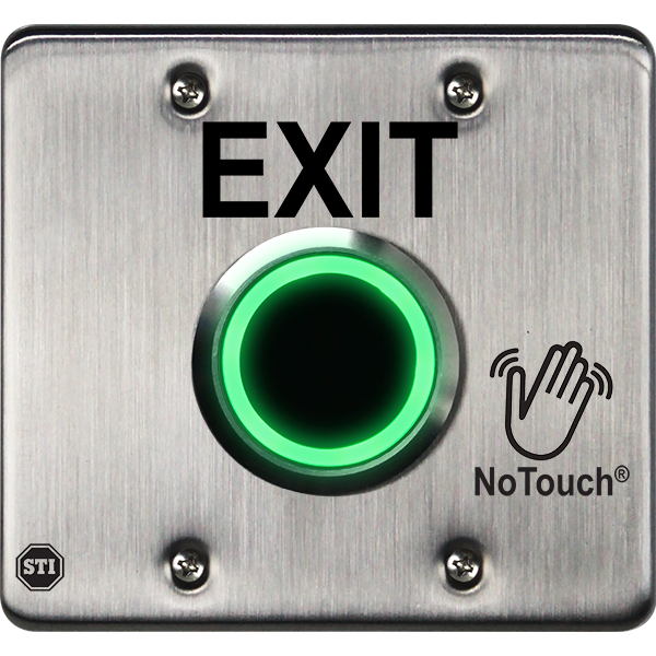 The button is constructed of corrosion resistant stainless steel, allowing it to take tough knocks in stride. Also, the faceplate is slightly oversized for retrofit applications to cover marks from a previous install. This durable and long lasting button is easily installed within minutes right on site. NoTouch® Stainless Steel Button offers three standard models: OPEN, EXIT and the international exit symbol representing a person exiting. Custom models are also available with printing capabilities at STI’s corporate and international offices. |