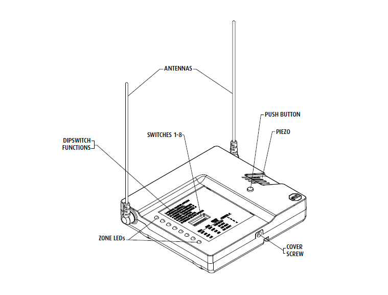 STI-V6400WIR4 supervised wireless 433 MHz (with 4-Channel Voice Receiver). Up to 1000 foot (line of sight) range.