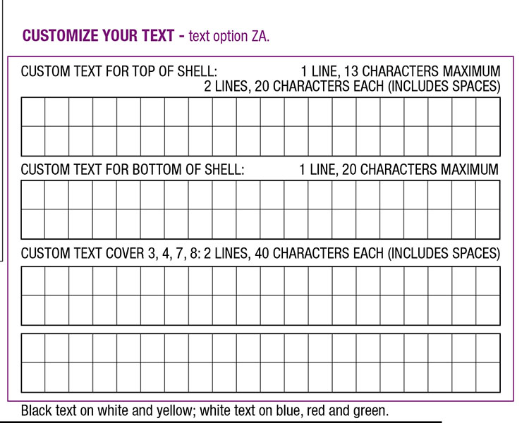 N/A AB = Abort EM = Emergency ES = Emergency Stop EV = Evacuation EX = Emergency Exit HV = HVAC Shut-Down LD = Lockdown NT = No Text PO = Emergency Power Off PS = Fuel Pump Shut-Down PX = Push to Exit XT = Exit ZA = Custom Text |