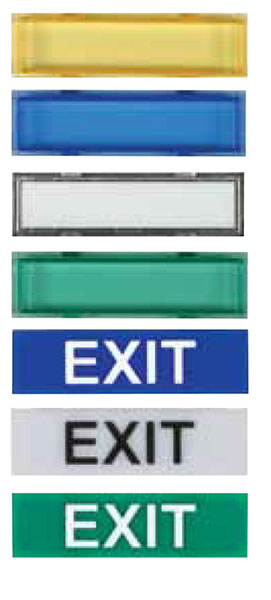 • Plate messages inscribed with EXIT and translucent blanks (allowing for custom labels). Offers over 200 different combinations.