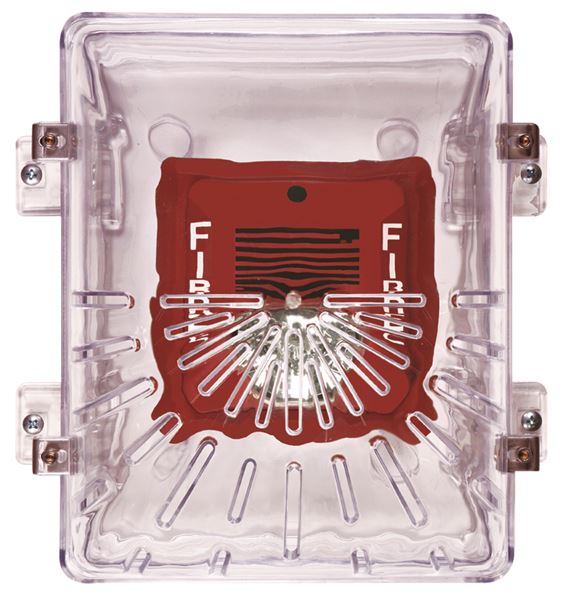 These virtually indestructible covers (slotted for horn or speaker units and solid for strobe-only alarms) are designed to stop vandalism and accidental damage. Molded of clear, thick, UV-stabilized polycarbonate material, they are backed by a three year guarantee against breakage in normal use. Slots in the STI-1210 allow the horn to be heard. For the STI-1210 series, spacer A has a four inch deep enclosed backbox, spacer B has an enclosed backbox molded with an integral double-gang outlet box. Spacer C has an open back for retrofit applications. Spacer D accommodates deeper units and applications with exposed conduit electrical connections. Spacer E has an open back frame for flush-mount applications. An appliance mounting plate comes with the STI-1219/1229. Unique Enviro Kits are available for extreme conditions where dampness or water is present.