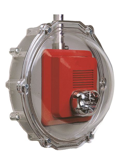 These virtually indestructible covers (slotted for horn or speaker units and solid for strobe-only alarms) are designed to stop vandalism and accidental damage. Molded of clear, thick, UV-stabilized polycarbonate material, they are backed by a three year guarantee against breakage in normal use. The STI-1227 are for strobes only. Many tough, clear spacers are available for larger strobe/horn units, retrofits, surfacemount and weather resistant applications. An appliance mounting plate comes with the STI-1219/1229. Unique Enviro Kits are available for extreme conditions where dampness or water is present.